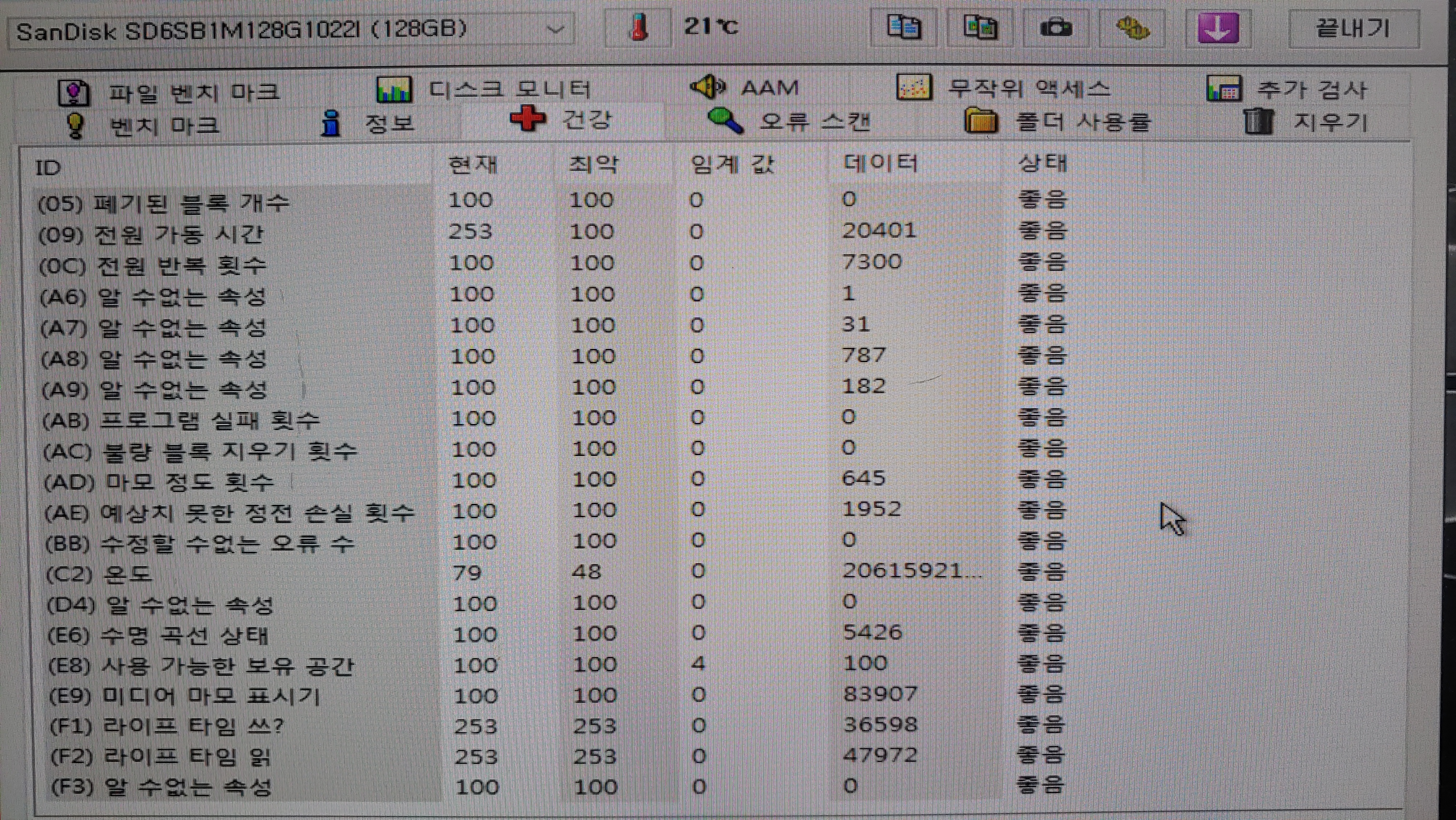 디스크 검사도 해주었습니다. 두